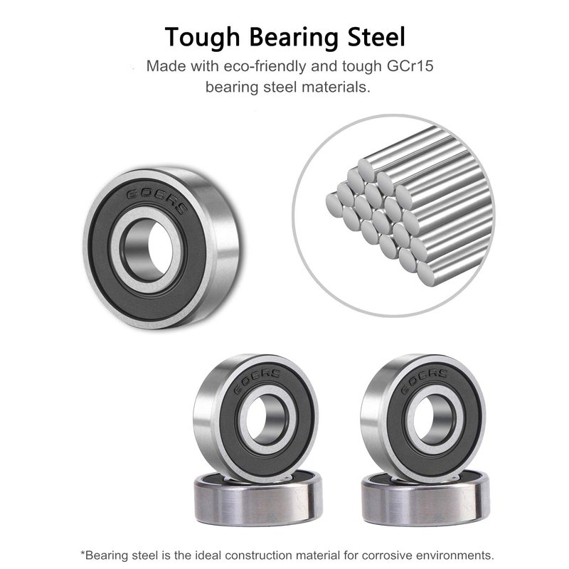 - 608-2RS ball bearings are a type of deep groove ball bearing that has two rubber seals to protect the bearing. These bearings are commonly used in skateboard wheels, inline skates, and other small machinery.