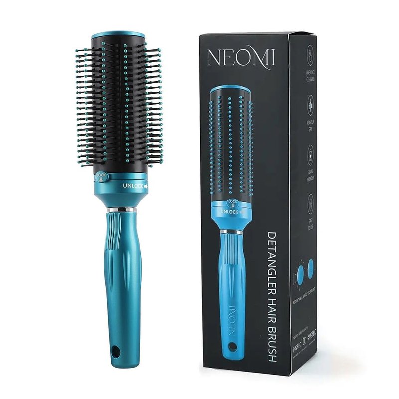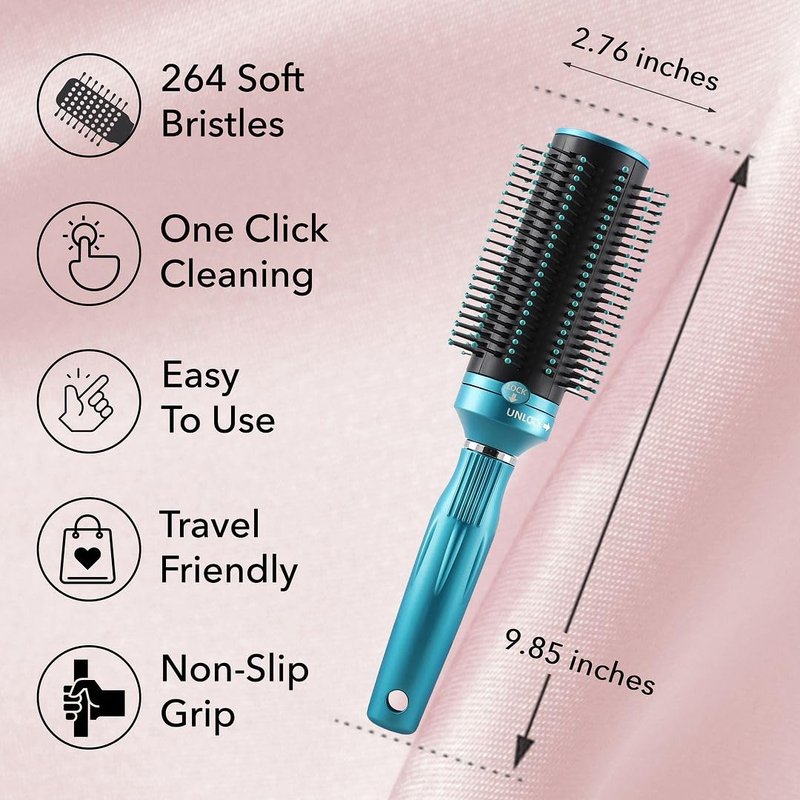 Shop LC Blue Self Cleaning Hair Brush Comb - Detangler Brush Round Brush for Blow Out - Easy Clean Roller Hair Brushes for Women Men Birthday Gifts
