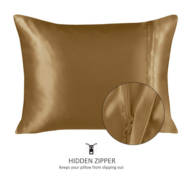 ShopBedding Luxury Satin Pillowcase for Hair – Standard Satin Pillowcase with Zipper, Gold (Pillowcase Set of 2) – Blissford