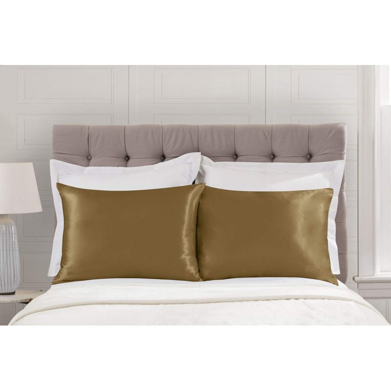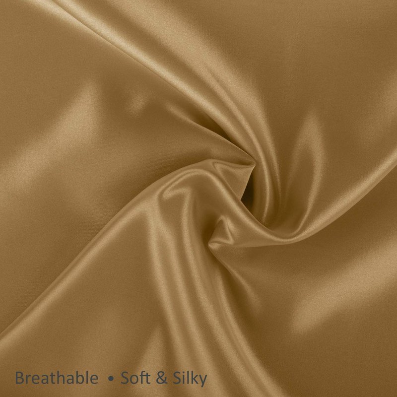 - Top Quality - Experience the luxury of our gold pillowcase. These satin pillowcases standard size, are constructed from 100% polyester with a glossy smooth finish. Strong Stitching, and are Wrinkle free.