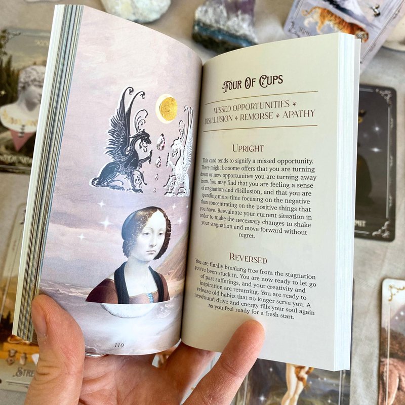 - CLASSIC ART ⚘ This tarot set is a mesmerizing interpretation of beautiful classical paintings and masterpieces of the past. These vintage artworks are reimagined as something new and innovative through collage art. The figures and ancient symbols carry intuitive messages and spiritual meanings that are intended to help the reader with reflection and guidance.