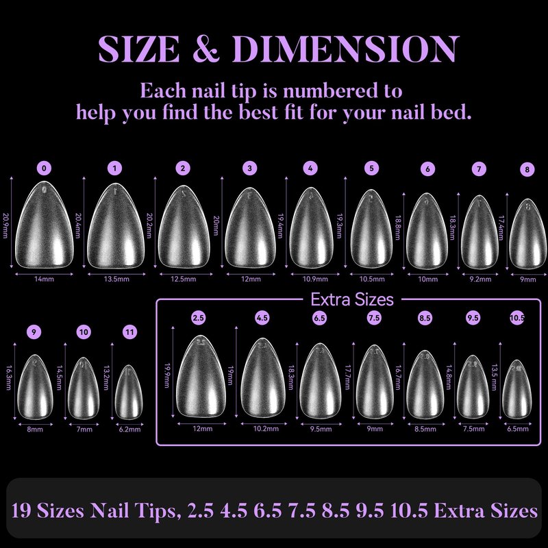 - 【Multiple Choices】- Jofay Fashion gel x nail tips include 19 sizes, in addition to the common 12 sizes, we have also added 7 extra sizes, suitable for different sizes nails.