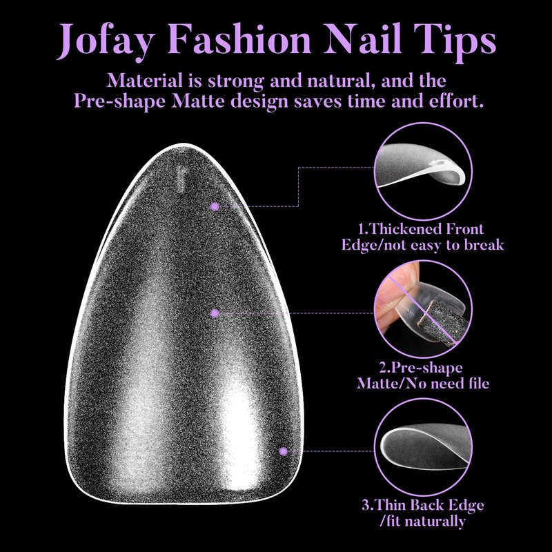 - 【Pre-polished & Pre-shaped】- Jofay Fashion soft gel nail tips adopt a "Pre-polished, Pre-shaped" design. The fully matte nail surface allows color to be firmly covered and not easy to fade. The pre-shaped fully covered nail tips do not require cutting and polishing, which can save you many tedious manicure steps.