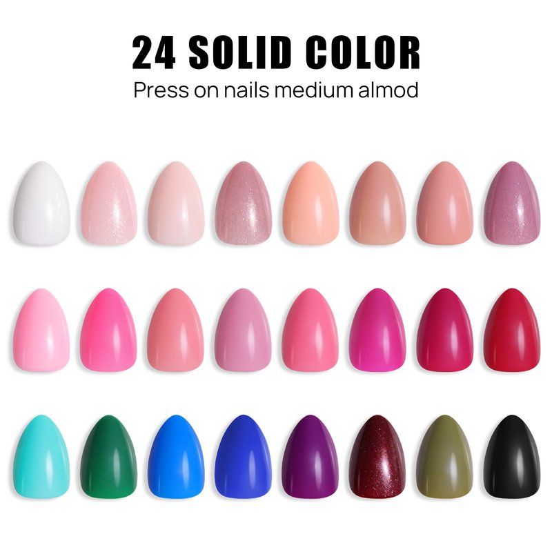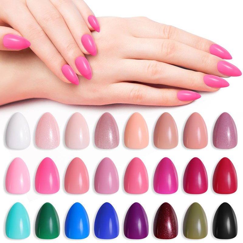 Short Almond Press On Nails - 576 Pcs Fake Nails with Nail Glue,Soft Gel Full Cover Acrylic False Nail Art,24 Color Stick On Nails With Four (6g) Nail Glue for Nail DIY