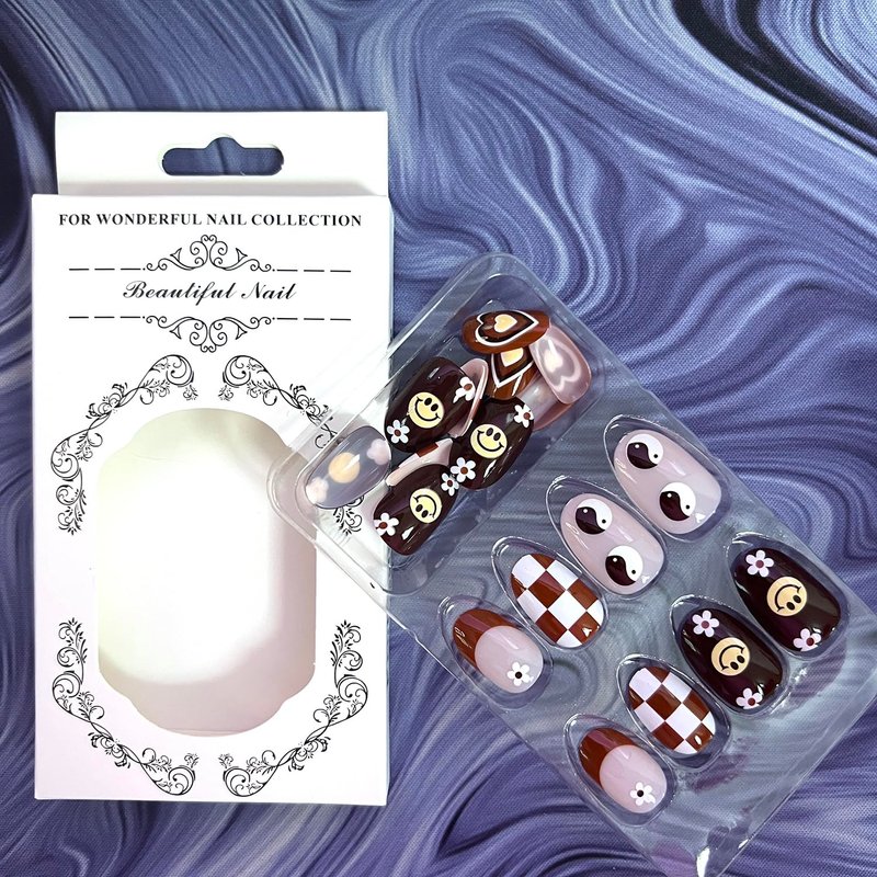 - 🟫[Product List] You will get 24 pieces of short almond fake nails with designs, 1 piece mini nail file, 24 pieces nail double-side stickers, 1 piece alcohol pad, 1 piece wooden stick. It is easy to trim and file them to in any length and shape you like.