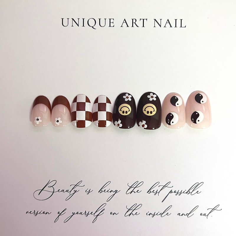 - 🟫[Easy to Apply] Instead of spend lots time and money at nail salon, you can change you nails style in 15 min anytime and anywhere.(The fake nails will stay longer if you clean your nails before use, and avoid water within the first hour of wearing)