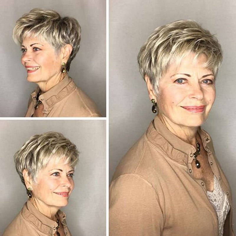Hairstyle: short blonde pixie cut wig