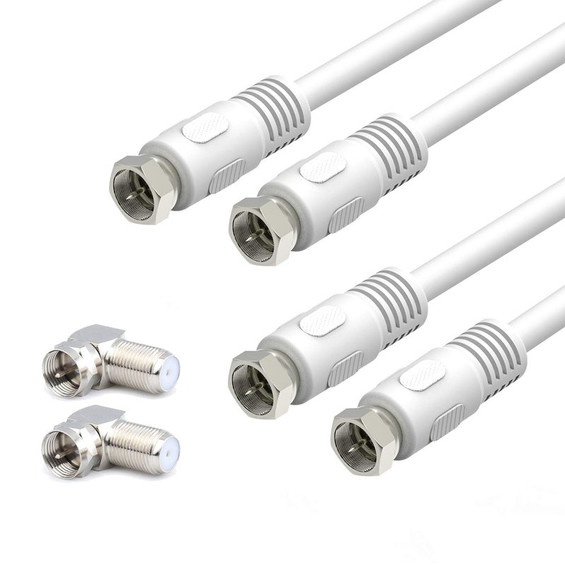 - Pacakge includes 2-pack 1ft cables and 2-pack right angle connectors. This RG6 coaxial cable is used for satellite receivers, cable modem, antennas, cable TV, digital router and other devices.