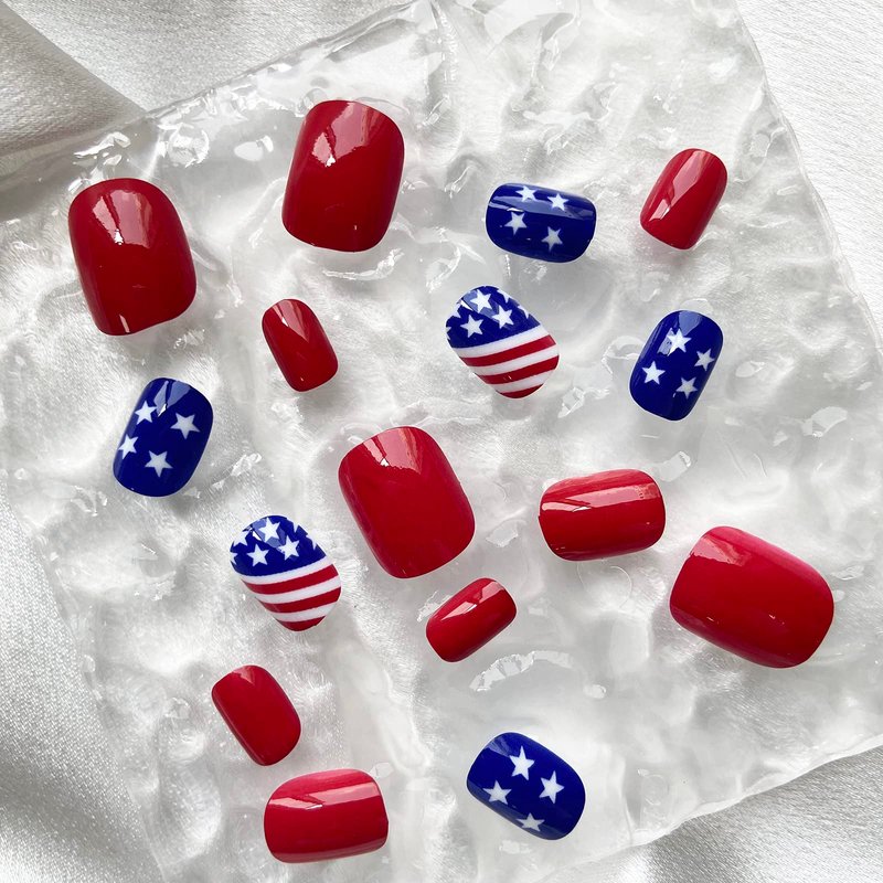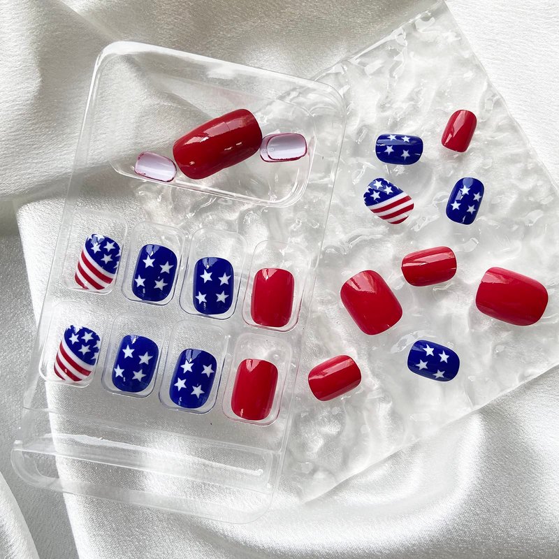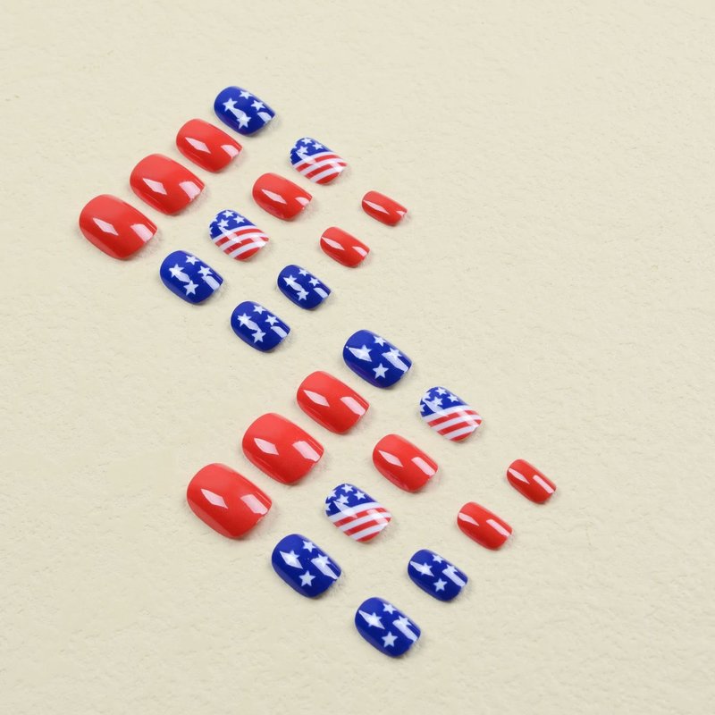- 【Safety and Environmental Protection】These 4th of July press on nails are made of high-quality healthy ABS material, no irritating smell, higher gloss, not easy to break, and will not harm the human body or nails, and can be used with confidence.