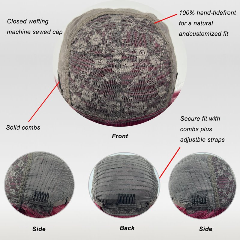 - Breathable and Comfortable Wig Net:The cap of our short human hair wig is average which fit 21.25 - 22.25 inches head circumference. There are two adjustment straps at two sides of the wig, it can be adjusted to accommodate different head circumference sizes.