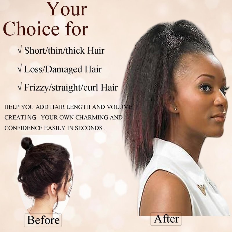 - Quality Material: The drawstring ponytails are made of high-quality, heat-resistant synthetic fibers , soft and silky close to your own hair .It will blend well with your hair to add the volume .