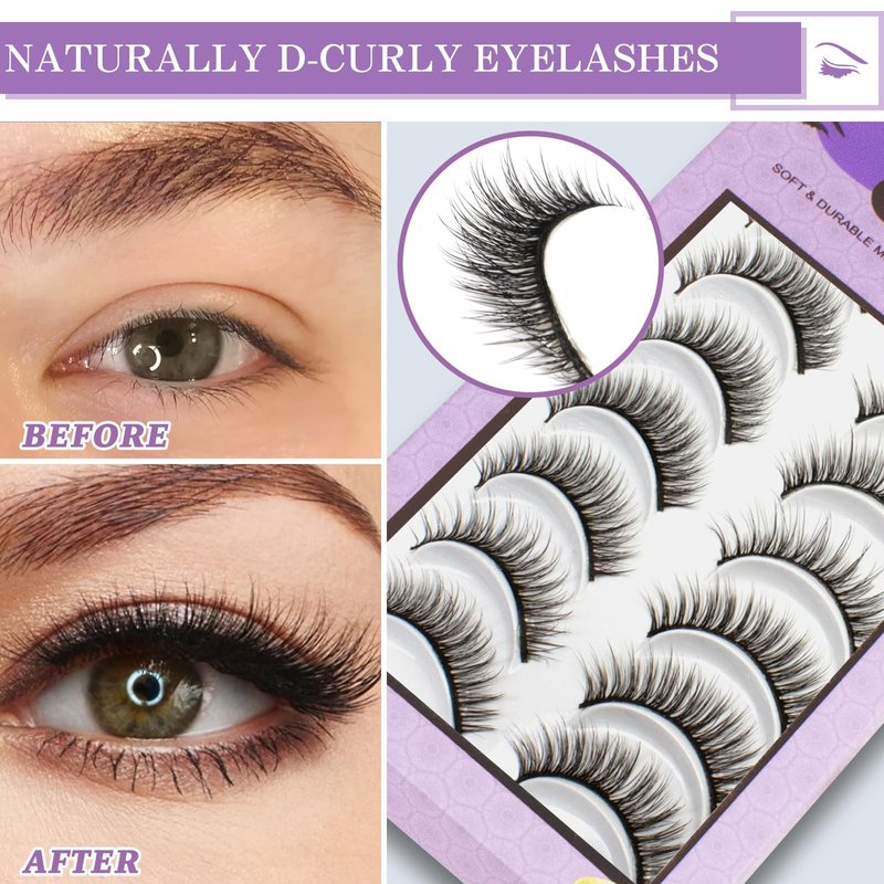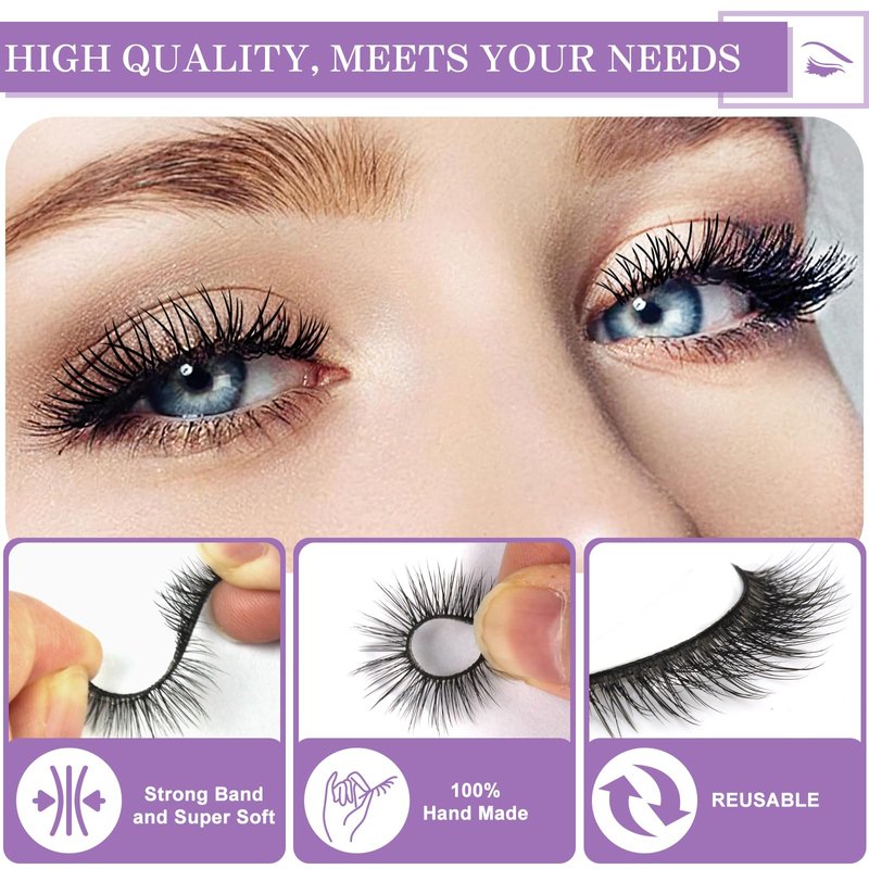 - Natural Look and Comfortable Mink Lashes: Our false eyelashes are light as feathers and smooth as silk. Give your eyelashes an incredible feeling of softness. Very durable and look natural. Suitable for daily life, party, and so on. Make your eyes charming and attractive. Wispy and fluffy lashes are 100% handmade with super soft and comfortable synthetic fibers. No irritation or allergy, which will make you happier and more confident, just enjoy it!