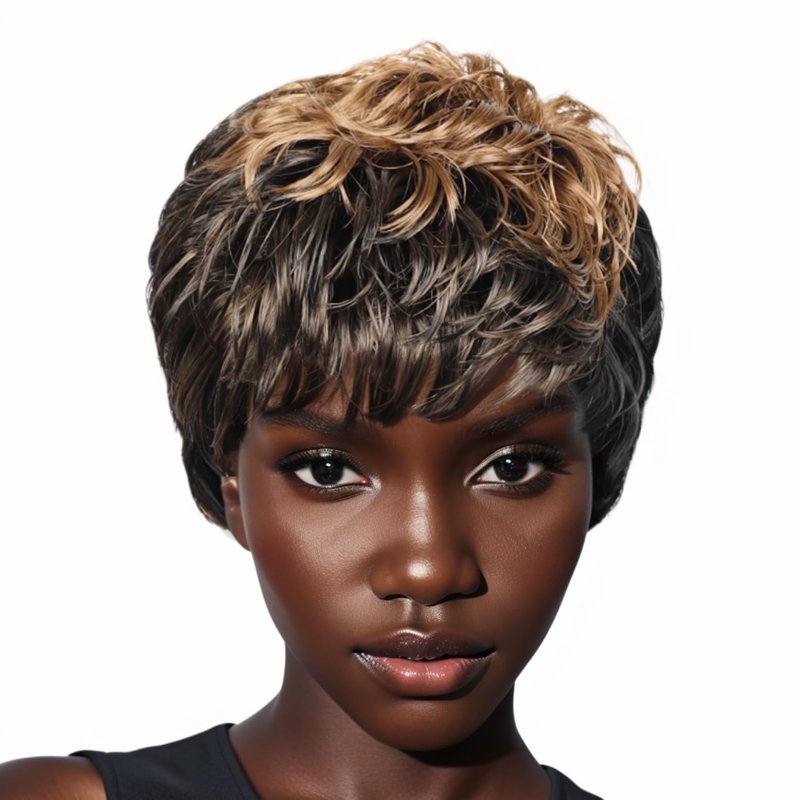- [Short Pixie Wigs] Introducing our classic short pixie wig: It comes pre-layered and pre-styled, with face-framing curtain bangs and perfect layers all around. It adds body, volume, and flow to your hair, giving you a flawless wavy look.