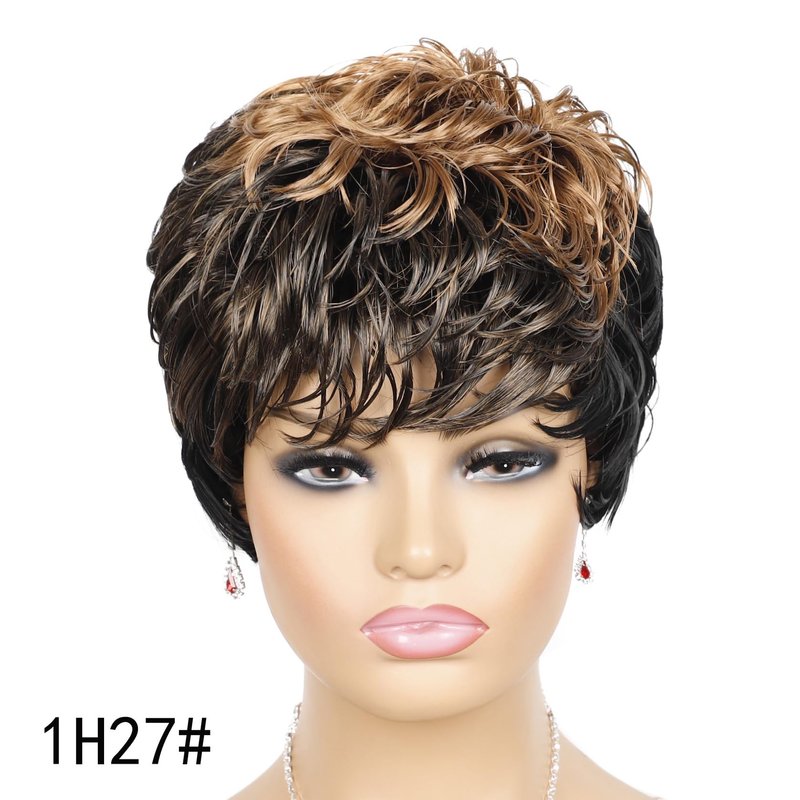 Short Pixie Cut Wig Synthetic Short Curly Wigs for White/Black Women Shot Layered Wavy Hair Wig With Bangs,Daily Wig (Mixed black&blonde 1H27#)