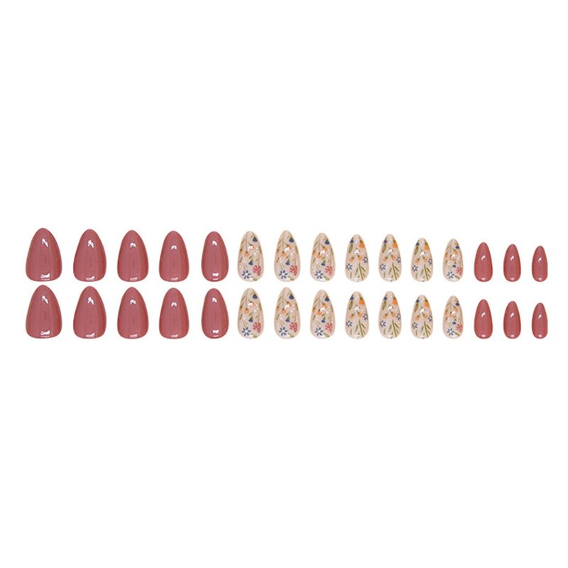 Short Press on Nails Almond Fake Nails Flower Acrylic Nails Fall Nails Press ons Full Cover Glue on Nails Cute False Nails Floral Stick on Nails for Women 30 Pcs