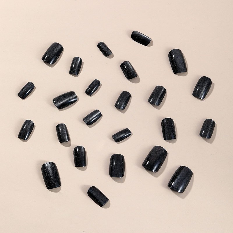 Short Press on Nails - Diowino Black Eye Cat Fake Nails 24pcs Dark Black Flash Glitter Short Acrylic Nails Glossy Solid with Glitter Designs False Nails Glue on Nails for Women Girls