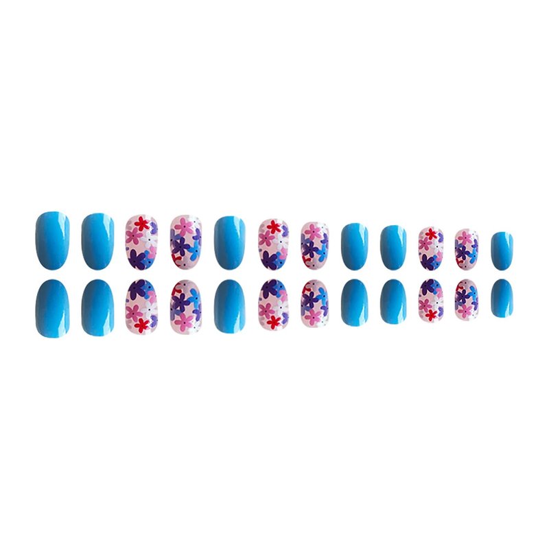 - Package Contains:You will get 24 PCS short blue press on nails with 12 size,a nail file, an alcohol bag ,24 PCS Jelly gel and a wooden stick for removing false nails tips.