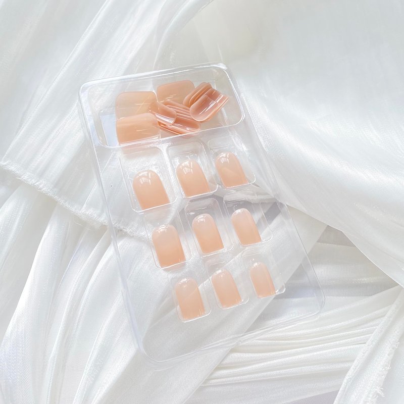 4. Stick a Jelly glue sticker on the nail, stick the fake nail from the root of the nail to the front of the nail, and then press it for a few seconds.