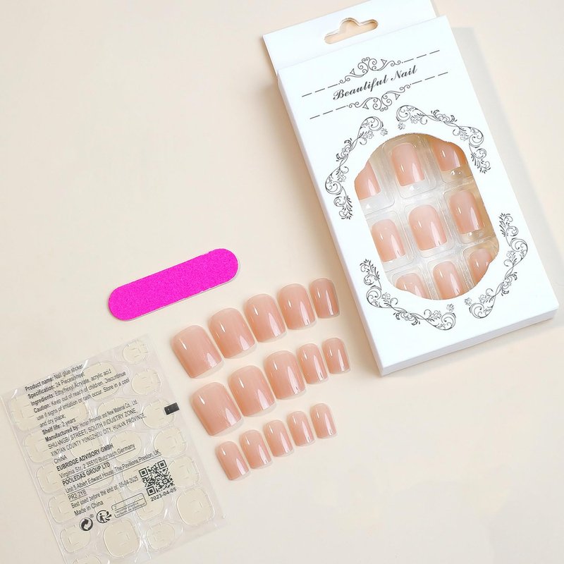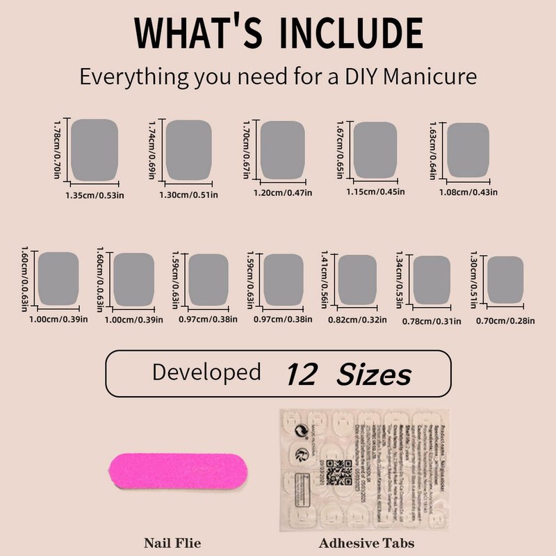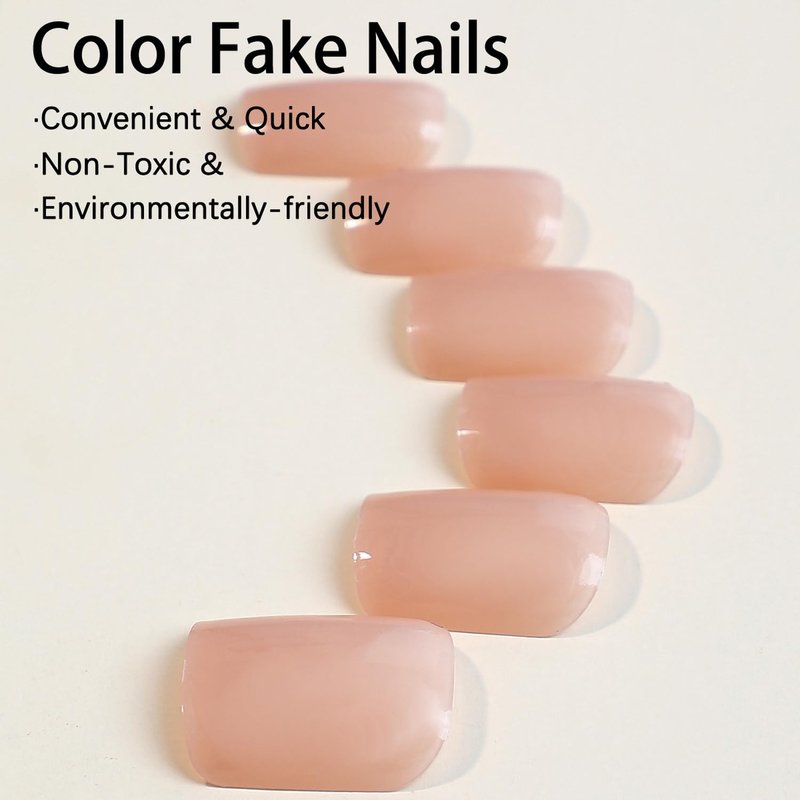 - 【Package Includes】You will get 24 short square fake nails with nude solid color design acrylic press on nails in 12 sizes, 1 nail file and 24 jelly glues,1 alcohol bag 1 small wooden stick.