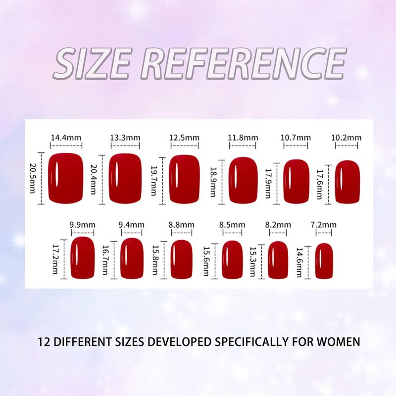 - 【What's Include】12 nail sizes 24 short fake nails ensure a totally custom fit, plus we give you everything needed just in case! Each set comes complete with a storage box, adhesive tabs, double-sided nail file, cuticle stick, and prep pad.