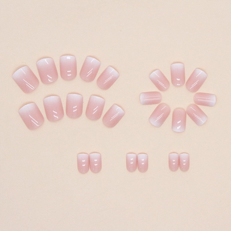 Short Press on Nails Square Pink Fake Nails with White Gradient Designs Acrylic Nails Press ons Reusable Glue on Nails for Women and Girls Daily Wear 24 Pcs