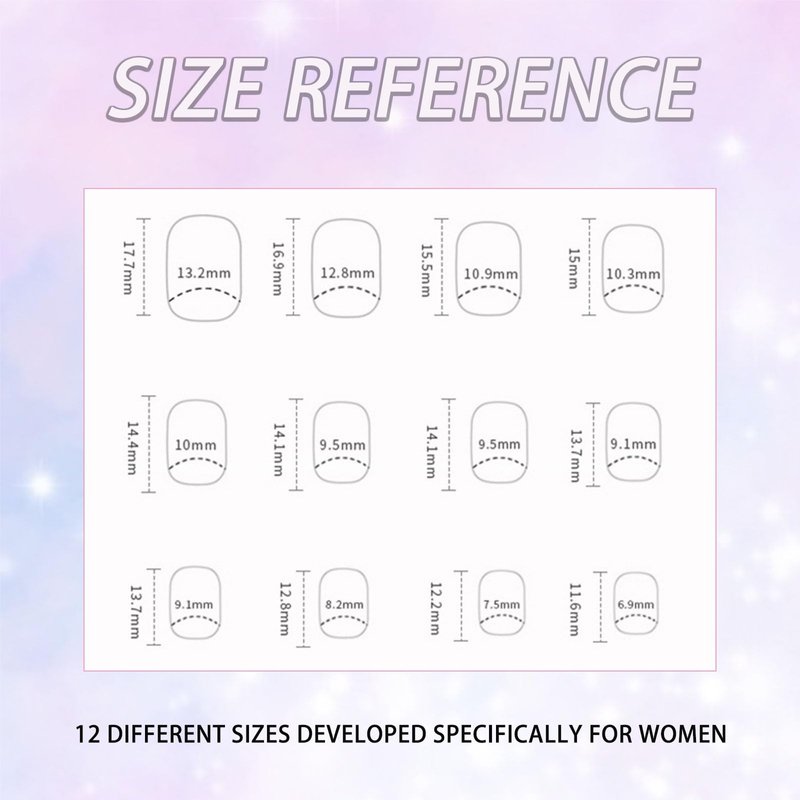 - 【What's Include】12 nail sizes 24 short fake nails ensure a totally custom fit, plus we give you everything needed just in case! Each set comes complete with a storage box, adhesive tabs, double-sided nail file, cuticle stick, and prep pad.