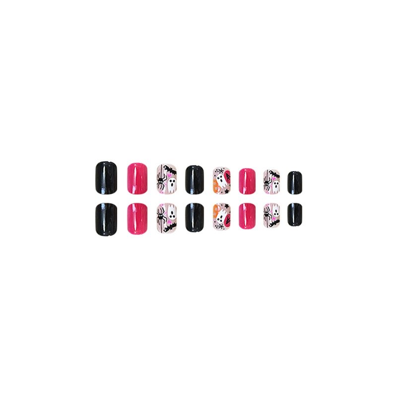Short Square Press on Nails Halloween Fake Nails Glossy False Nails Pink Black Acrylic Nails Ghost Spider Artificial Nails Full Cover Star Bat Stick on Nails Cute Glue on Nails for Women Manicure