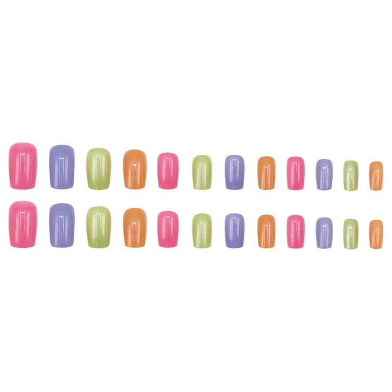 Short Square Press On Nails Multicolour Gel Fake Nails, Colorful Glue Stick On Nail Tip with Jelly Glue, Reusable Natural Fit Gel Glossy Acrylic Manicure False Nails Kit 24Pcs