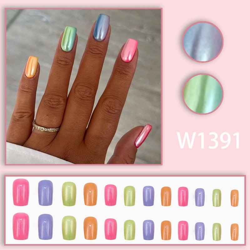 Feature:Short square fake nails for women and girls,colorful false nails with design acrylic nails.