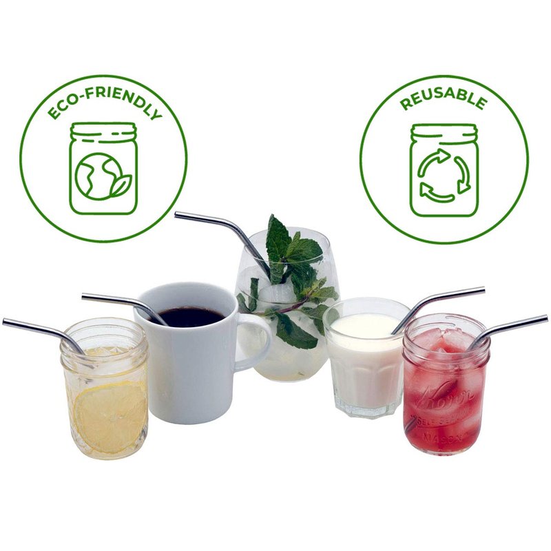 - GET THE RIGHT SIZE FOR YOUR JAR: at 6.25″ long, 6mm outside diameter, these short bent metal drinking straws are the best for half pint (8oz) mason jars, and also great for cocktails, coffee mugs, wine glasses, and small cups.