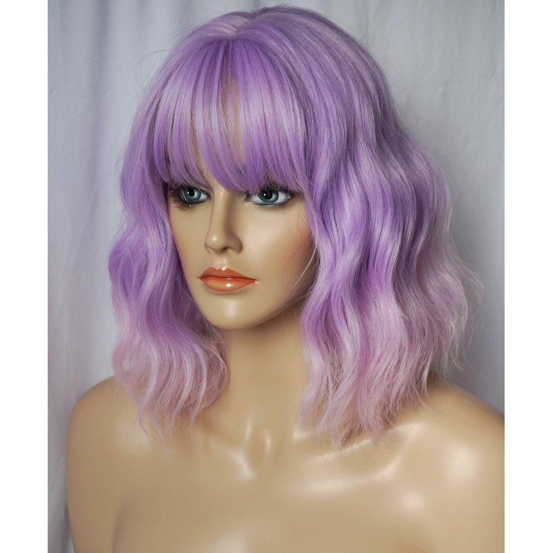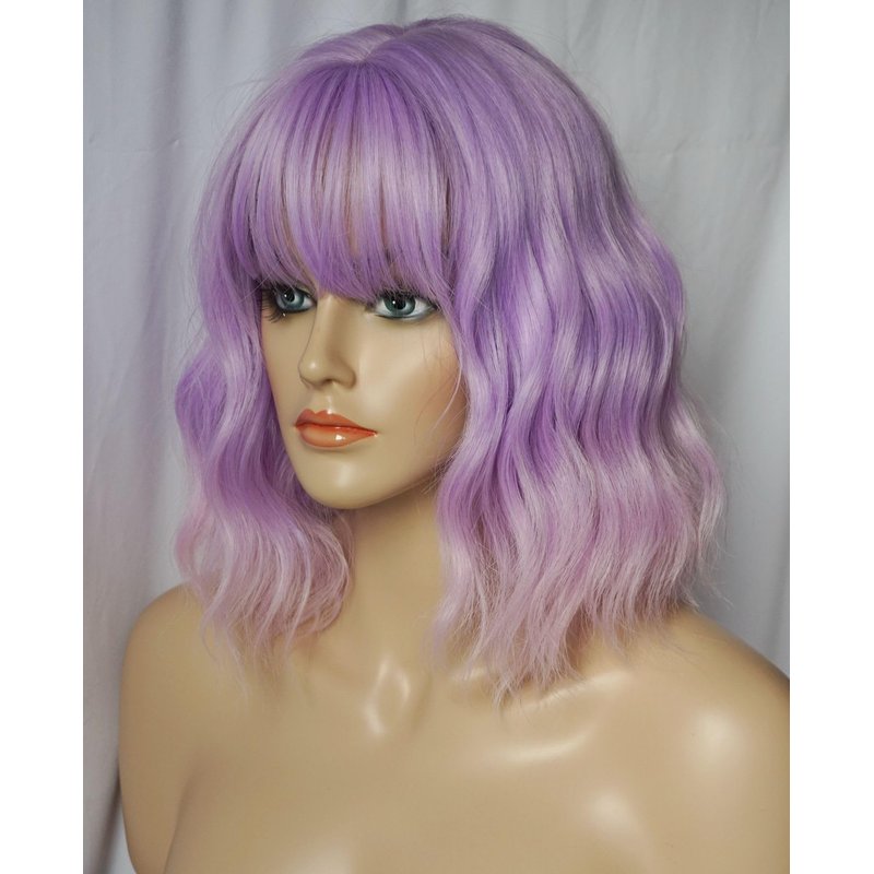 Short WavyPurple wig Amity costume wig the owl house synthetic hair wig with bangs14 inches wig for Women and Girl (Purple ombre pink)