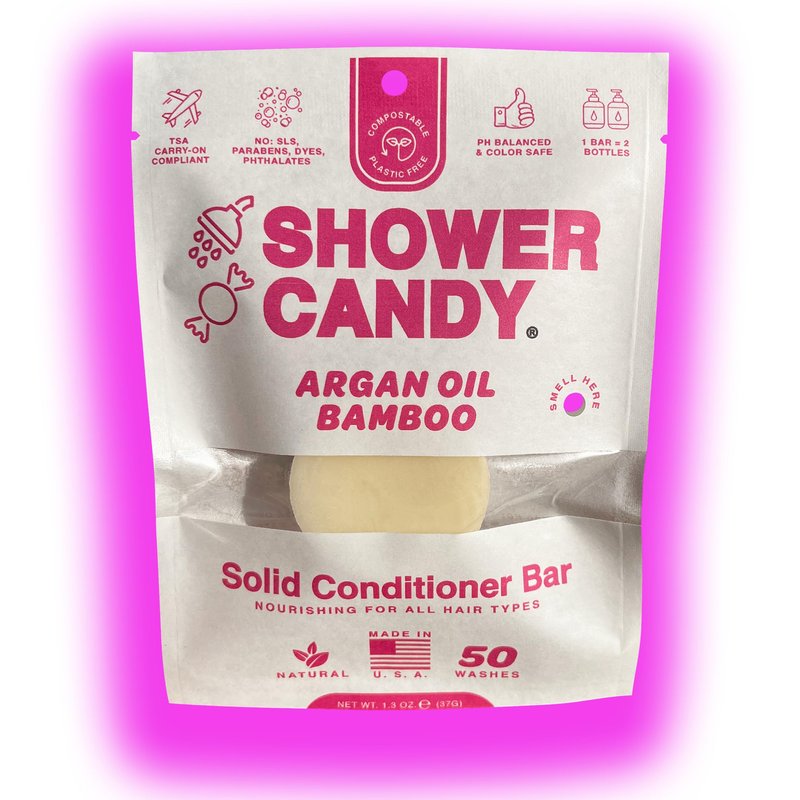 Shower Candy Argan Oil Solid Hair Conditioner Bar | Natural Conditioner with Plastic-Free Packaging | Zero Waste Compostable Pouch - SLS free Conditioner| Travel Size Conditioner Bars