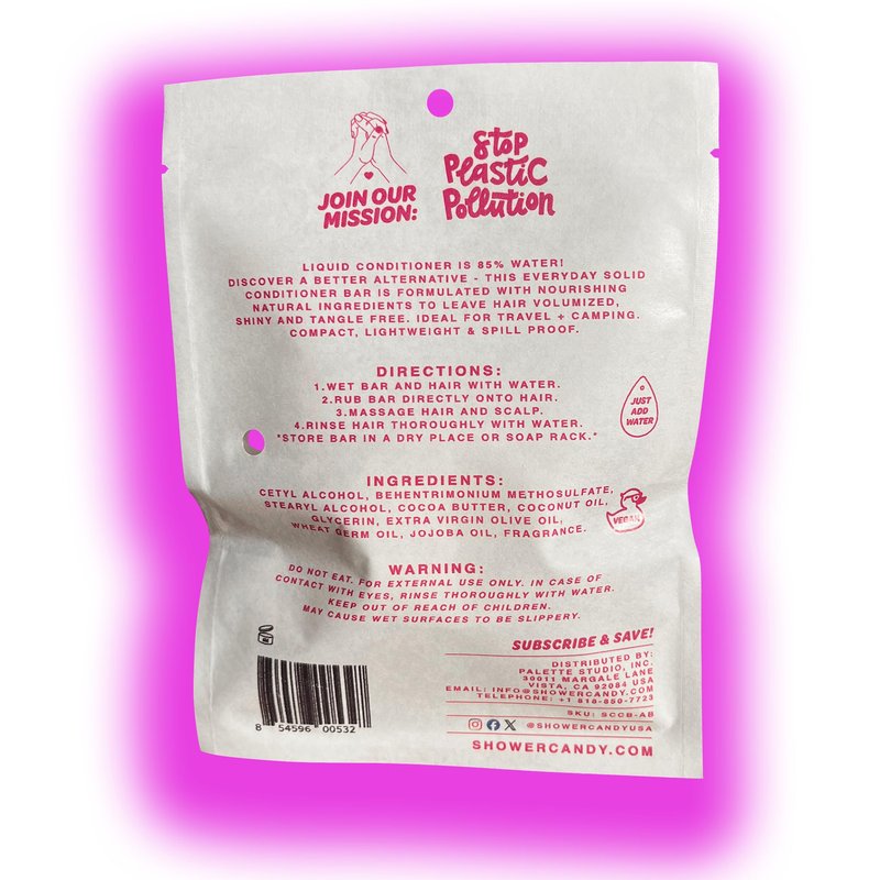 - ECO-FRIENDLY CONDITIONER: Join our mission to stop ocean plastic pollution. All Shower Candy plastic-free shampoo and conditioner bars are packaged in 100% compostable pouches and deliver a zero waste hair care solution. Your customers can now enjoy a salon quality wash, guilt-free by minimizing the environmental impact of their daily self-care routine.