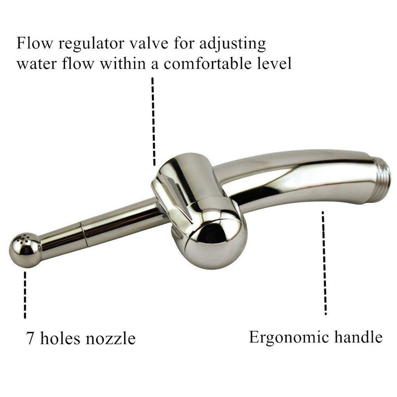 - 【Ergonomic design】our curved toilet hose sprayer forms the ideal angle for a complete cleansing wash.the water pressure is adjustable. the nozzle is inserted into the rectum, often with the aid of lubricant. the shower is turned on, and the pressure valve is adjusted until the water flow is at a comfortable level.