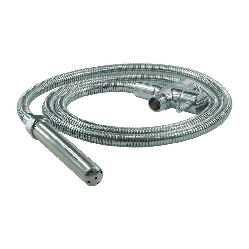 - 79inch extra-long flexible hose, non-rusting, flexible, non-winding, 2 metal nozzles, 1 silicone probe attachment ,flow regulator and hose included, extra long 79inch hose - nozzles are 3.94"" and 5.04"" in Length.