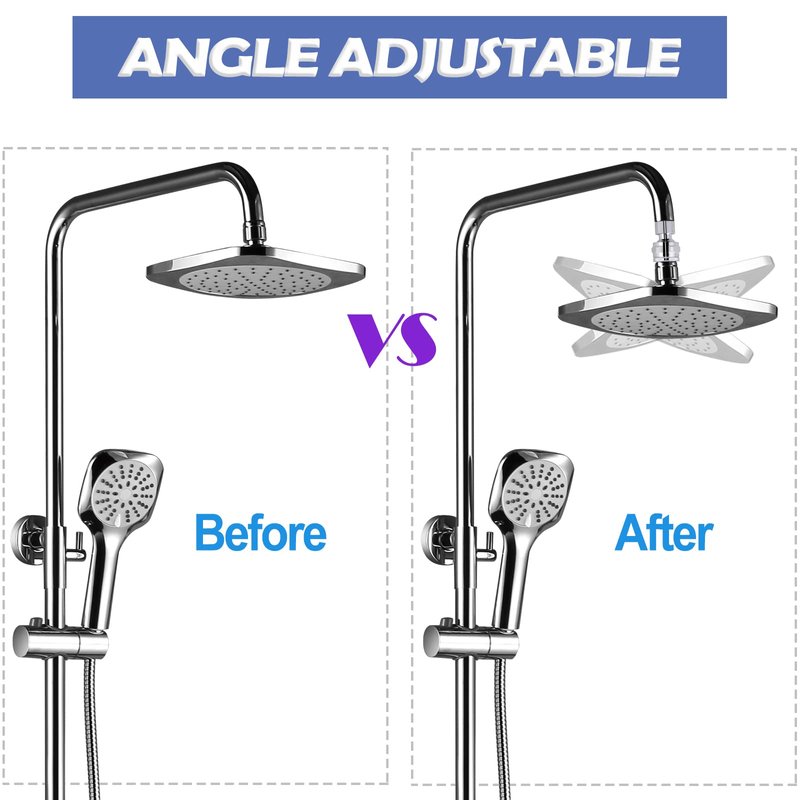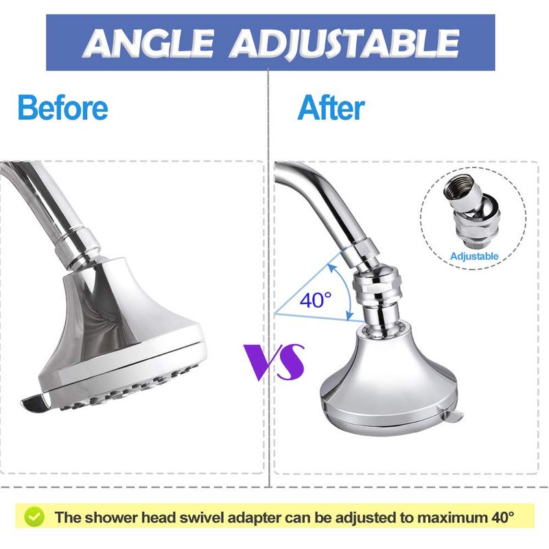 - ✅ ADJUSTABLE SHOWER HEAD ADAPTER:The adjustable max swivel angle is 40° per side, 360° free swivel, which allows you adjust any angle or position of the shower head you want. Extend your showering area, providing you more convenience. The shower head swivel adapter is stationary and stay in the exact position once adjusted. The swivel adapter connector is tight enough and it won’t fall back down easily.