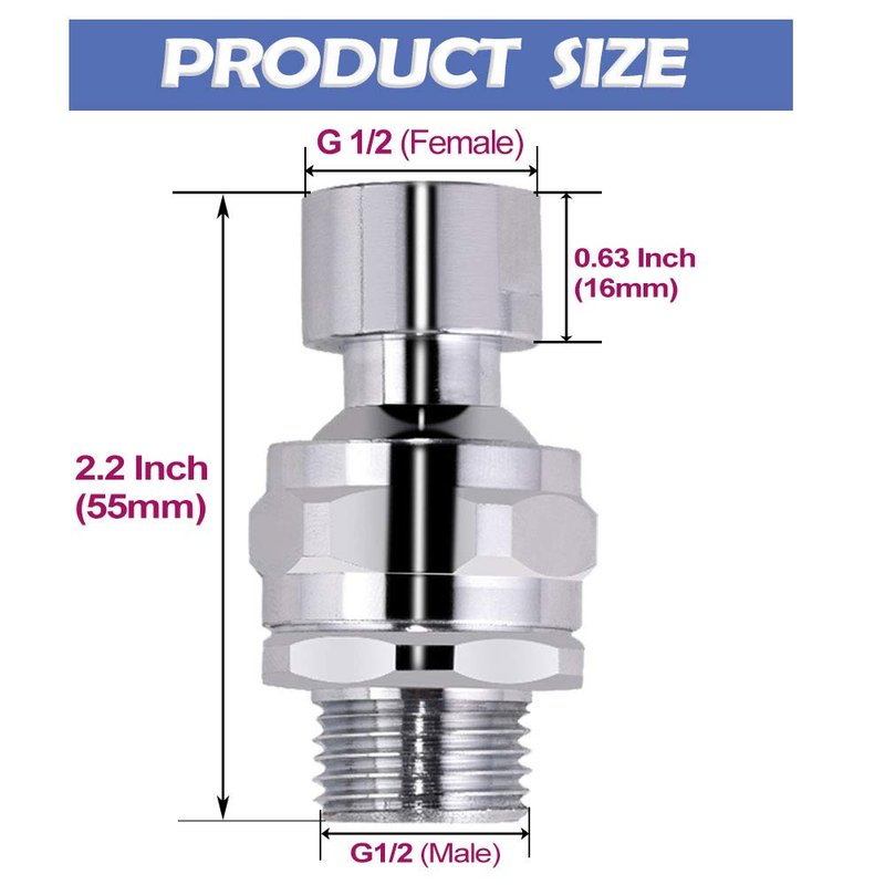 - ✅ QUALITY BRASS MATERIAL:This swivel shower head ball adapter is built of good performance of solid brass construction body. All metal, heavy duty, high pressure resistance and high temperature resistance. Bright shiny polished chrome plated finish, resists corrosion and abrasion, best matches with other bathroom fixtures. After many improvements and tests, it perfectly prevents water leakage and has a long service life.