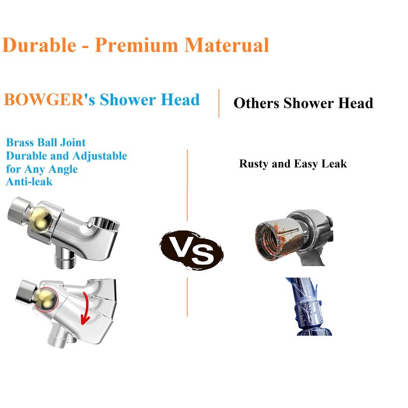 - @ Durable/Premium Material - This handheld chrom showerhead is made of high-quality rustproof ABS with an exquisite bright-mirrored plated finish, high-temperature resistance, high hardness, safer and more durable. You can freely adjust the angles and directions as your desire for hands-free operation with its Angle-adjustable overhead bracket