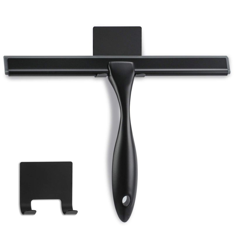 Shower Squeegee, 10-Inch Matte Black Squeegee, All-Purpose Stainless Steel Squeegee for Bathroom, Shower Doors, Mirrors, Tiles and Car Windows - 100% Streak Free
