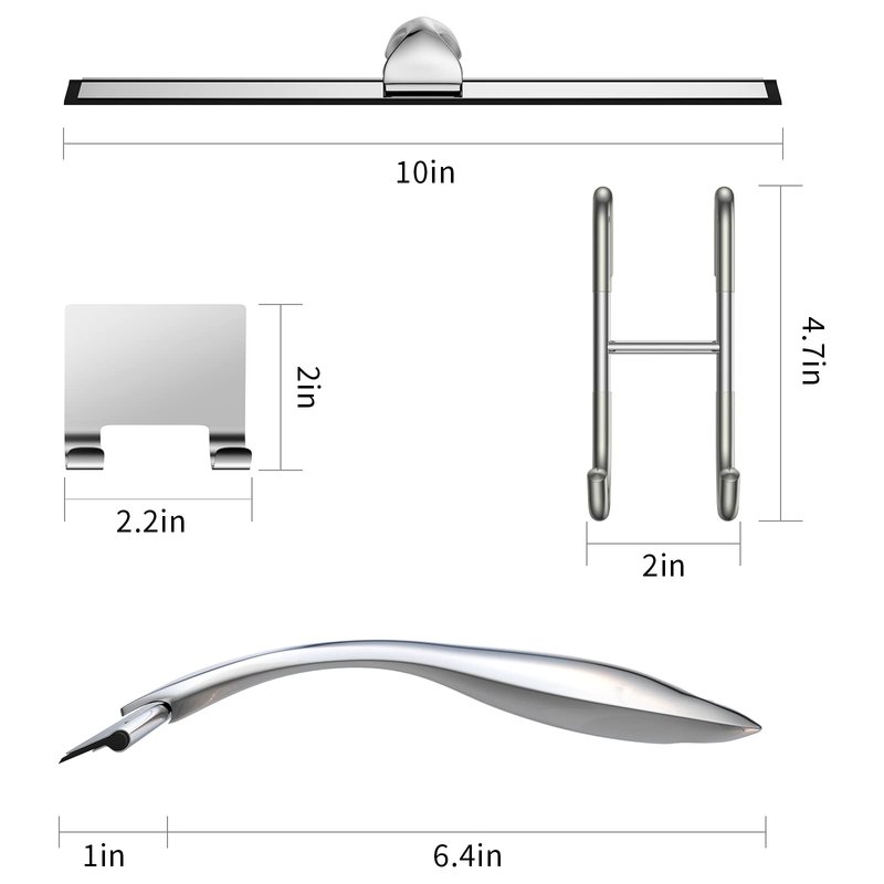 Shower Squeegee and Window Squeegee, Stainless Steel, 100% Streak-Free, Cleaner for Bathroom Showers Glass Doors, Home Mirrors, Car Windows Wiper, Adhesive Holder, Shower Door Hook, 10 Inch, Silver