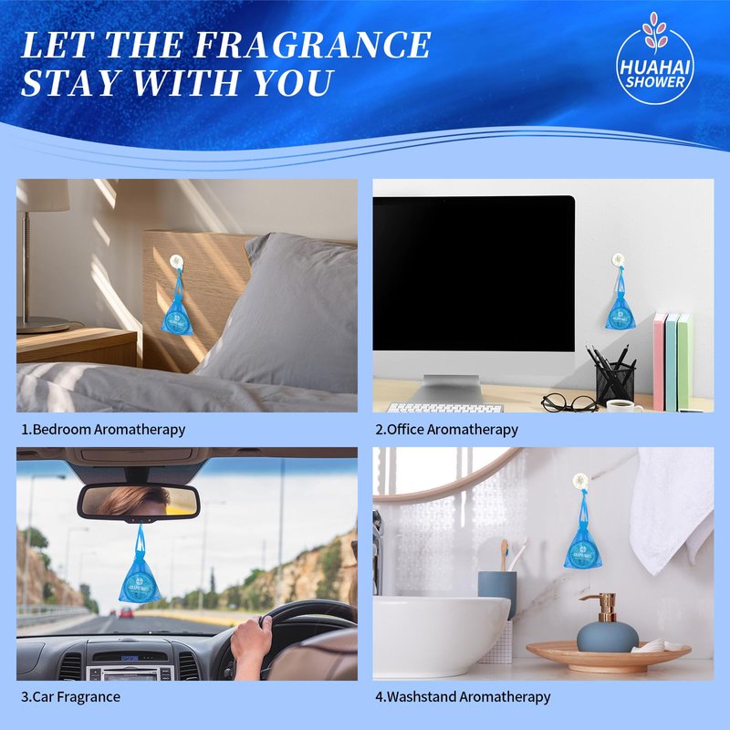 - 🌼[Newly Upgraded Usage] You can use the normal usage method, take out the tablets and put them into a small stream of water, for a better experience, please don't submerge the tablets, you can also use the hook mesh bag to hang it behind you where you can get water drenching of water so that you can smell the scent quicker, or you can hang it in your car, desk, bedside table, washstand, etc., and it will give out a light scent even when it's not submerged in water!