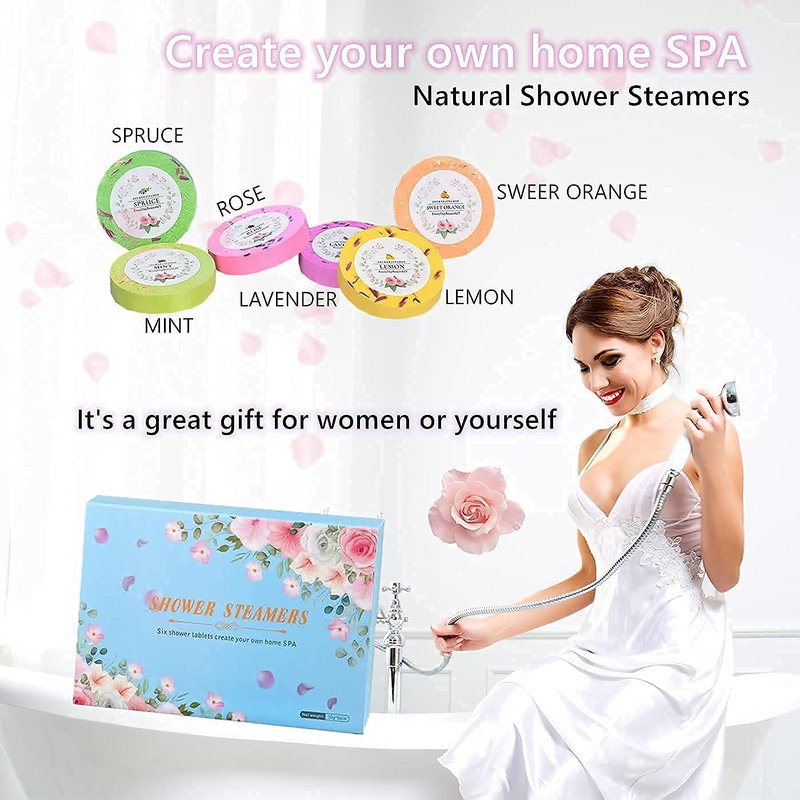 - Daily essentials: Use shower steamers aromatherapy gift sets in the daily can help you relieve stress and physical fatigue, relax your body and mind, and enjoy the fun of SPA at home. Body and shower Spa gifts for women who has everything , shower bomb is really nice addition to a relaxing shower.