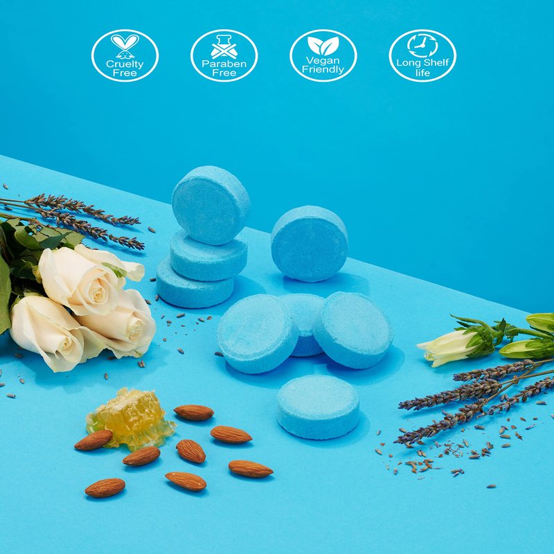 - A Deluxe Home Spa Experience - Lasting longer than standard shower sinus tablets that melt too fast, our shower tablet set is ideal for modern women who want to feel rejuvenated the natural way. Our Relaxing Vapor Tablets includes 2 x Ocean Bliss Scent, 2 x Honey Almond Scent, 2 x Lavender Scent & 2 x White Rose Jasmin Scent.