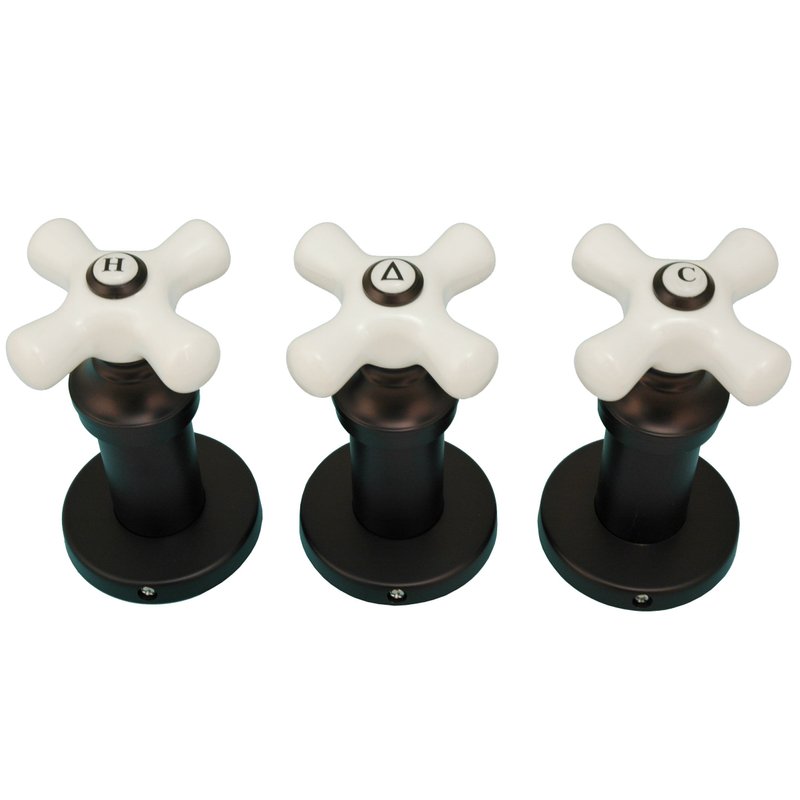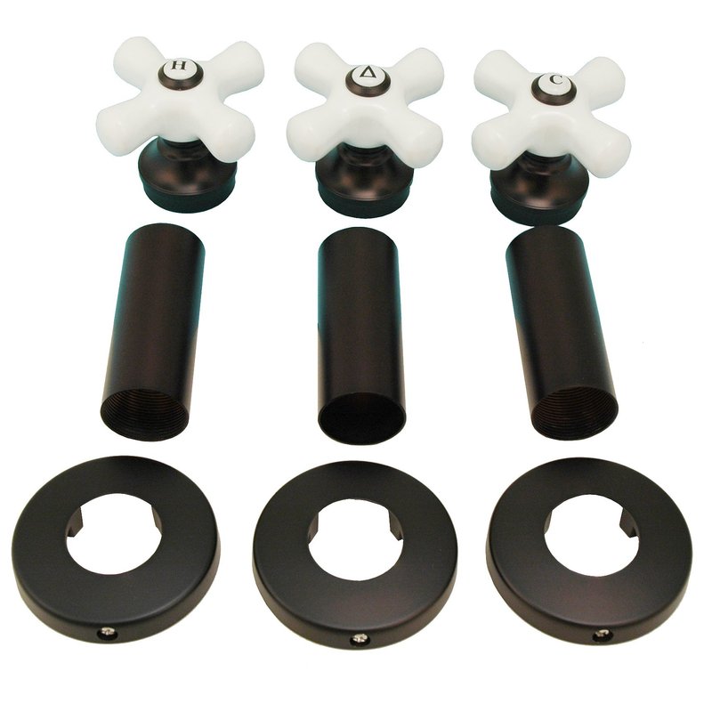 - The trim kit includes 3 Porcelain handles of H, C and D, 3 sleeves and 3 flanges. Stems not included