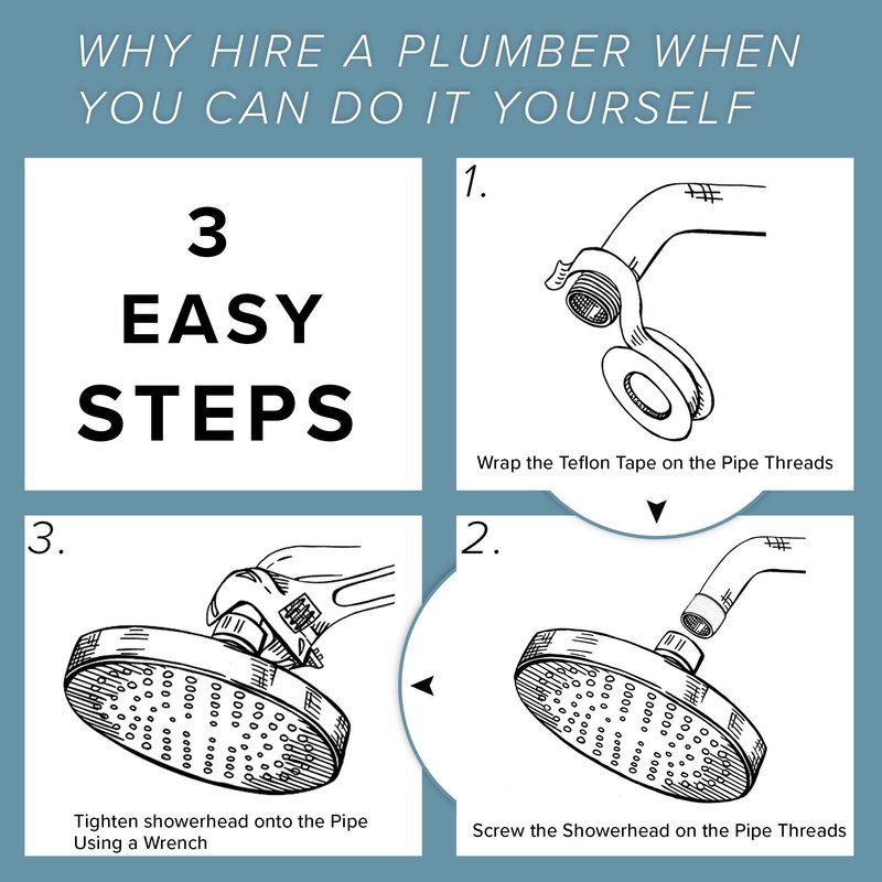 - Complete, All-Inclusive Shower Head Kit + Easy - This all-inclusive shower head kit includes everything you need to upgrade your shower in minutes. For hassle-free installation, follow the step-by-step guide. Each pressure-boosting shower head includes a mesh sand filter to remove sediment for smooth, clean water, and Teflon plumbing tape for a 100% anti-leak shower head and no extra expenses or trips to the hardware store.