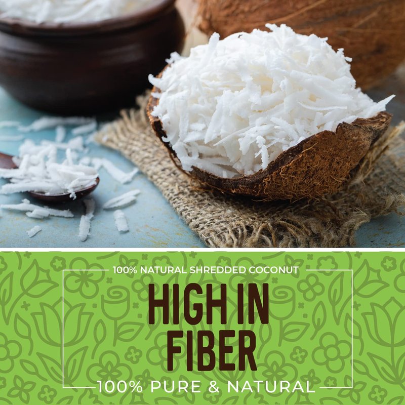 Shredded Coconut Unsweetened, 1 lb. Unsweetened Coconut Flakes, Dried Coconut Shavings, Dry Coconut Shredded, Flaked Coconut Shreds. All Natural, Non GMO, Pure Unsweetened Shredded Coconut 16 oz.