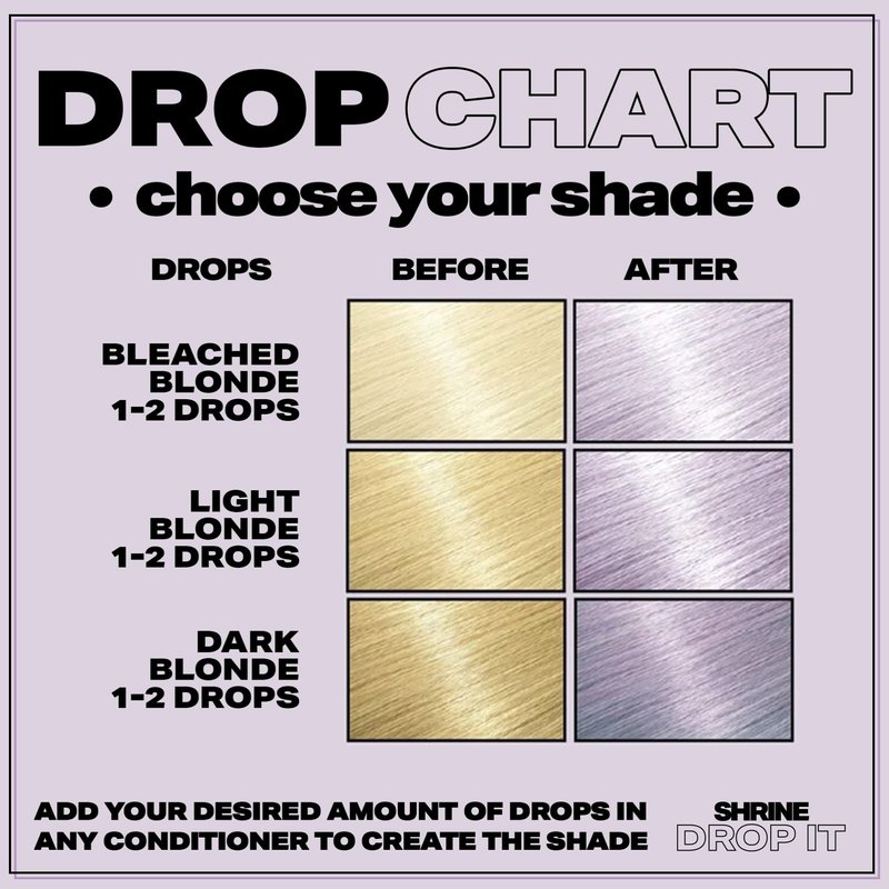 - Let Your Hair Down With Ease: One-time-use hair dye & toner kits are outdated, not to mention time-consuming & messy. Shrine Drop It Toner elixirs have turned that process on its head. Simply squeeze hair dye droplets into your sturdy, reusable silicone bowl with a favorite conditioner and mix it up. Apply to freshly washed hair for an uplifting transformation. That’s it! Indulge regularly for a fun dose of natural-color confidence.