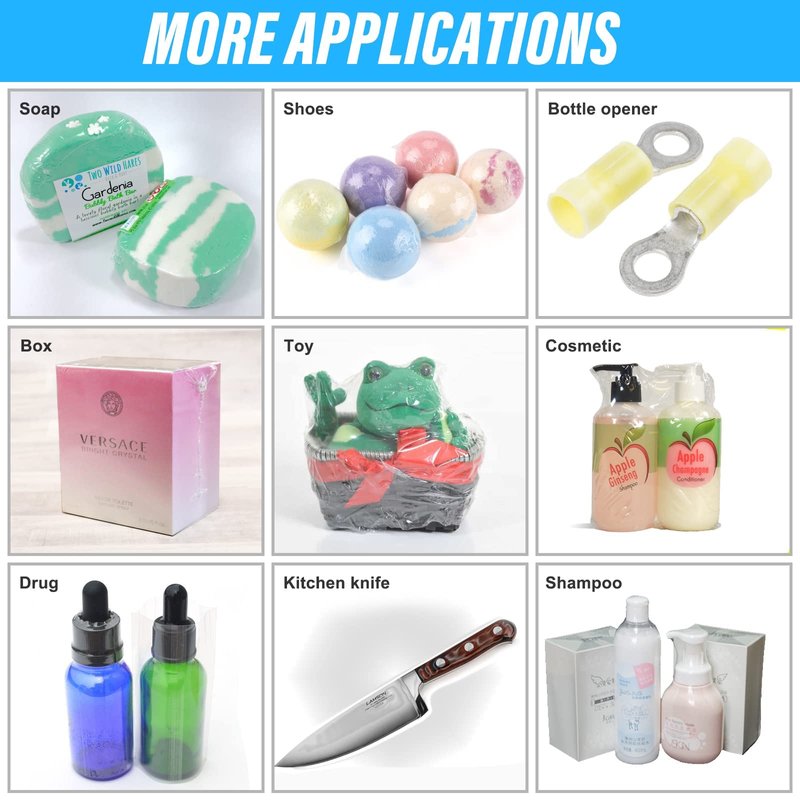 - 【Multi-purpose】 PVC heat-sealed shrink bags are very suitable for packaging stationery, photo frames, soap making supplies, bath bombs, oil bottles, gifts, candles, cosmetics, small wine bottles, small gifts, and homemade DIY crafts for sale.