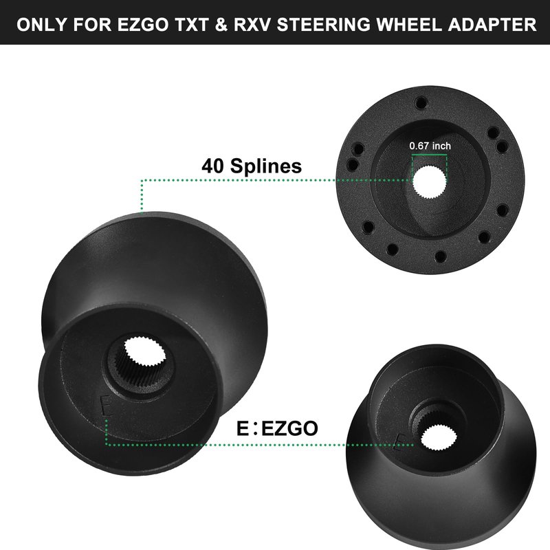 Attention: There are four types of Golf Cart Steering Wheel Adapters, this model only fits EZGO adapters with 40 spline holes. Please select the correct adapter.