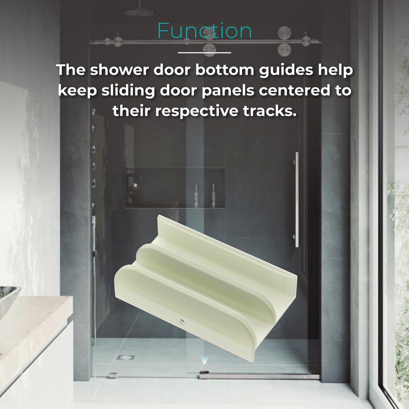 - 【Function】The shower door parts bottom guide help keep sliding door panels centered to their respective tracks. The shower door center guide is used with sliding shower door tub enclosures constructed of extruded metal frames.
